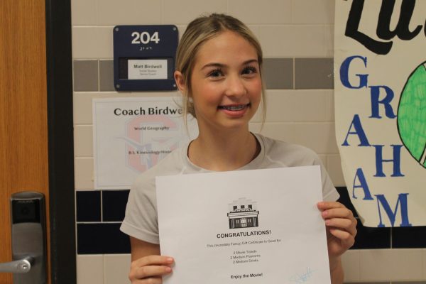 In previous years, students at GISD were not allowed to wear their homecoming mums to school. However, that changed this year when GHS Principal Mr. Anderson decided to allow students to wear their mums on campus, and it was a huge success! To celebrate, Mrs. Talbott, the GHS newspaper sponsor, organized a fun contest in her newspaper class. Students voted on mums in categories such as “flashiest” and “largest”. They also cast their votes for the best garter. Winners in each category received a special prize of two movie theater tickets with an included popcorn and soda for their outstanding spirit and creativity. These prizes were donated by Graham’s local movie theater, big thanks to them! The winners of this contest were Savannah Fricks for flashiest, Maddi Bishop for largest, and Mike Garcia for best garter.